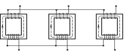 При исследовании работы группового трехфазного трансформатора можно каждый из трех трансформаторов рассматривать отдельно. Поэтому полученные ранее уравнения для однофазного трансформатора, его векторные диаграммы и схемы замещения можно полностью использовать при рассмотрении процессов в каждой фазе группового трехфазного трансформатора.