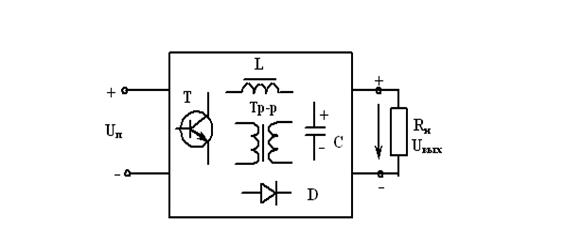 В данной случае рассмотрены DC – DC преобразователи электрической энергии в электрическую, содержащие набор компонентов (рис. 8.1). Топология схемы преобразователя, а следовательно связи, между его компонентами определяются характером передачи энергии. Легко видеть, что в указанный компонент входят дроссель, конденсатор, трансформатор, транзистор (управляемый ключ) и диод. Резистор намеренно исключен, поскольку его наличие привело бы к нежелательным потерям энергии.