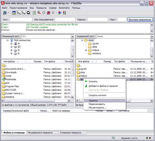 Создавать папки и файлы на FTP-сервере, переименовывать, редактировать и удалять их можно при помощи контекстного меню .