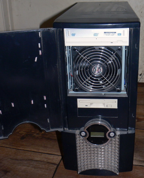 Модуль Cooler Master 4-in-3 во внешних отсеках корпуса. Он позволил нам использовать на четыре жёстких диска больше, чем стандартно поддерживает корпус. Нажмите на картинку для увеличения.