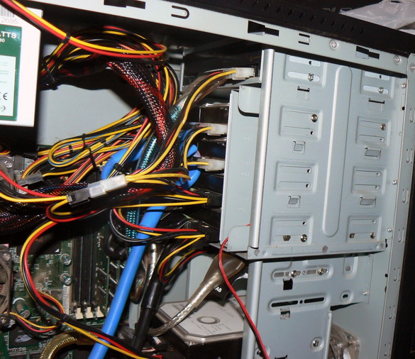 Корпус должен обеспечивать достаточное охлаждение жёстких дисков. В принципе, сегодня можно купить разнообразные модели корпусов, удовлетворяющие этому условию. Для первого файлового сервера я взял простой корпус. Он использовал 120-мм вентилятор для охлаждения жёстких дисков спереди, а также предусматривал 120-мм вытяжной вентилятор сзади. К нему я добавил модуль "Cooler Master 4-in-3" с отдельным 120-мм вентилятором для охлаждения жёстких дисков. Этот модуль прекрасно подходит для установки дополнительных винчестеров. Разве что для смены одного жёсткого диска приходится извлекать весь модуль целиком.