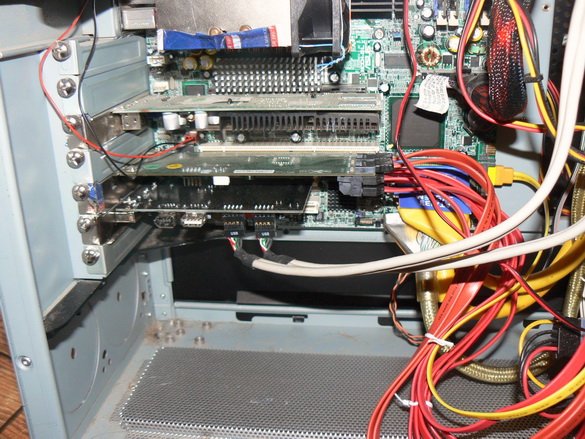 Карта контроллера Supermicro MV8, вставленная в слот PCI-X. Нажмите на картинку для увеличения.