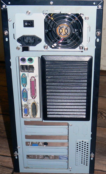 120-мм вытяжной вентилятор сзади за чёрной решёткой. Нажмите на картинку для увеличения.