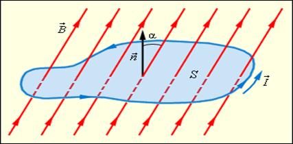 где B – модуль вектора магнитной индукции, α – угол между вектором и нормалью к плоскости контура (рис. 4.20.1).