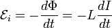 Через индуктивность выражается ЭДС самоиндукции в контуре, возникающая при изменении в нём тока[4]: