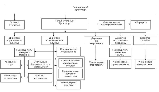 На данный момент в компании существует три подразделения, занимающихся непосредственно предоставлением услуг – коммерческая служба, дирекция линейных продаж, дирекция МЛМ. Все три дирекции находятся в непосредственном подчинении исполнительного директора. На настоящий момент за каждой дирекцией закреплена определённая зона ответственности, чётко отвечающая функциям подструктуры.
