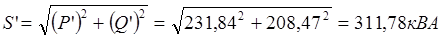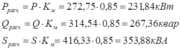 6.Уточнение величин рассчитанных мощностей с учетом коэффициента участия в максимуме нагрузки Км, который принимаем равным 0,85:
