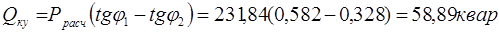 3. Определение величины реактивных расчетных мощностей отдельных групп электроприемников:
