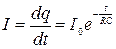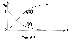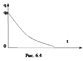 Уравнение (6.5) показывает, что скорость уменьшения заряда конденсатора пропорциональна величине этого заряда. Интегрируя уравнение (6.5) при условии, что в момент времени t=0 q=q0, получим
