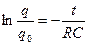 Разделим переменные и проинтегрируем это уравнение с учетом начального условия: при t=0, q=0: