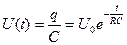 Функция q(t) называется экспоненциальной. График зависимости q(t) приведен на рис. 6.4. Закон изменения напряжения на конденсаторе в процессе разряда аналогичен (6.7):
