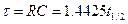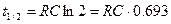 Способ измерения постоянной времени состоит в определении t1/2 и умножении полученной величины на 1.44. Так как экспонента асимптотически приближается к оси абсцисс, то точно установить окончание процесса разряда конденсатора (так же как и процесса заряда) не представляется возможным. Поэтому целесообразно измерять время уменьшения величины заряда в 2 раза, т.е. “половинное время”. За каждый интервал времени t1/2=0.693ּRC заряд на емкости уменьшается в два раза (рис. 6.5).