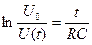 Построив логарифмическую зависимость, y=f(x), где , а , получим прямую, котангенс угла наклона которой к оси Х есть характеристическое время релаксации заряда, или постоянная времени RC: