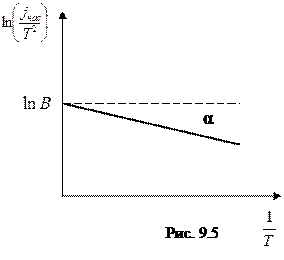 (рис.9.5). Определив тангенс угла наклона прямой к оси абсцисс, можно найти работу выхода: