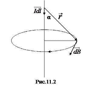 где – магнитная постоянная; r – расстояние от элемента тока до рассматриваемой точки (рис.11.2). Уравнение (11.2) получило название закона Био-Савара-Лапласа. Модуль вектора можно найти по формуле: