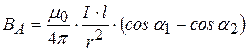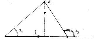 где l – длина проводника; r – расстояние от проводника до точки А; I – сила тока, идущего по проводнику (рис.11.3).