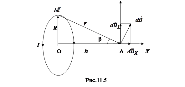 Вычислим подробнее индукцию магнитного поля на оси кругового витка с током (рис. 11.5).