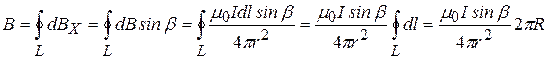 Таким образом, закон Био-Савара-Лапласа позволяет, если известна форма проводника, свести задачу определения индукции магнитного поля B, создаваемого проводником с током, к задаче суммирования элементарных индукций, согласно формулам (11.3) и (11.1).