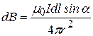 Элемент тока создает в пространстве магнитное поле, индукция которого в произвольной точке А пространства в вакууме определяется законом Био-Савара-Лапласа: