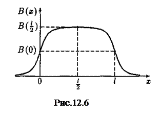График зависимости B=f(x) изображен на рис. 12.6. При формула (12.16) для магнитной индукции в центре соленоида переходит в полученное ранее выражение (12.12) для бесконечного соленоида.