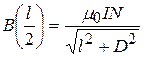 Эта формула даёт следующие значения магнитной индукции на торцах соленоида и в его середине: