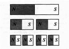 Оказалось, однако, что симметрия между магнитными и электрическими явлениями не столь прямолинейна. Если отдельные тела можно зарядить либо только положительно, либо только отрицательно, поскольку существуют элементарные заряженные частицы – носители электрических зарядов двух разных видов, – то отделить один из магнитных полюсов от противоположного невозможно. Если разрезать на две части магнит, то каждая часть будет снова вести себя как самостоятельный магнит, имеющий на своих концах противоположные полюсы (рис. 13.3).