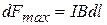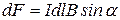 Из закона Ампера (13.6) следует, что сила максимальна, если элемент проводника с током расположен перпендикулярно линиям магнитной индукции: