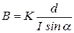 С осью рамки связана стрелка прибора, показывающая угол поворота рамки относительно закреплённой оси ОО под действием магнитного поля постоянного магнита. Поскольку зависимость индукции поля B от угла поворота рамки β нелинейная (13.17), то шкала прибора также нелинейна и проградуирована в относительных единицах d, пропорциональных отношению