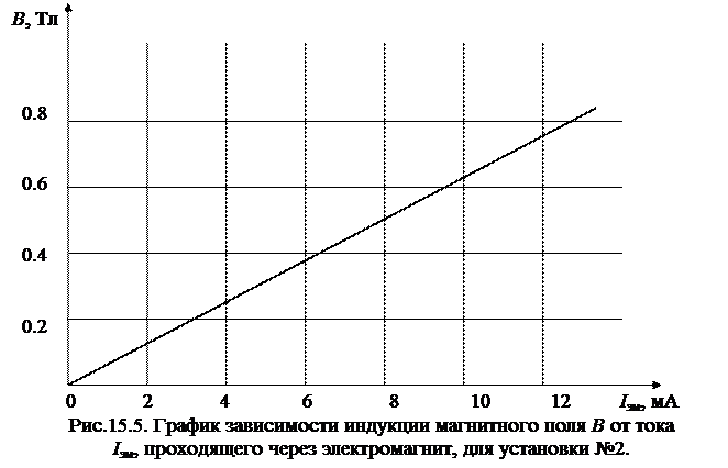 14. По графику (рис.15.5) зависимости В от Iэм определите В и занесите в таблицу 15.2.