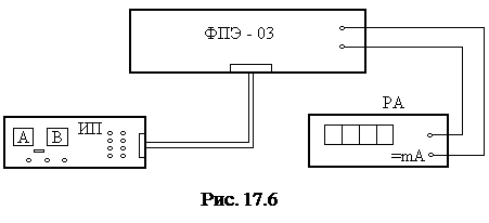 Приборы и оборудование: модуль “Заряд электрона” (ФПЭ-03), источник питания (ИП), амперметр (РА). Функциональная схема лабораторной установки представлена на рис. 17.6.
