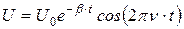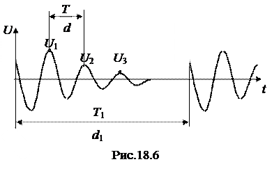 При не очень больших значениях сопротивления контура ( , где L – индуктивность катушки, С – емкость конденсатора)), на экране осциллографа наблюдается картина затухающих колебаний, как это показано на рис.18.6, что соответствует закону изменения напряжения
