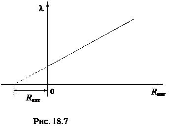 Значение сопротивления в контуре можно изменять с помощью магазина сопротивлений (Rмаг.). Полное активное сопротивление контура R складывается из активного сопротивления катушки индуктивности Rкат. и сопротивления магазина Rмаг.: . Из (18.17) получим, что зависимость l=f(Rмаг.) логарифмического декремента затухания от сопротивления Rмаг. в контуре линейная (рис.18.7).