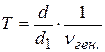 В работе для получения колебаний в контуре используется модуль ФПЭ-10 с контуром, изображенным на рис.18.10. Если генератор задает частоту nген., то цикл подзарядки конденсатора длится секунд, этому времени на экране осциллографа соответствует отрезок d1 (рис.18.6). Периоду колебаний T соответствует отрезок d. Следовательно, период затухающих колебаний может быть определен по формуле , или: