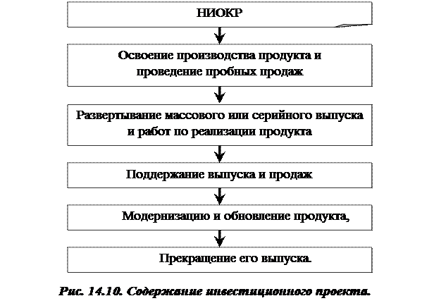 Инновационный проект охватывает жизненный цикл новшества от момента возникновения идеи до момента прекращения выпуска продукта или использования технологического процесса. Такой проект включает: НИОКР, освоение производства продукта и проведение пробных продаж, развертывание массового или серийного выпуска и работ по реализации продукта, поддержание выпуска и продаж, модернизацию и обновление продукта, прекращение его выпуска.