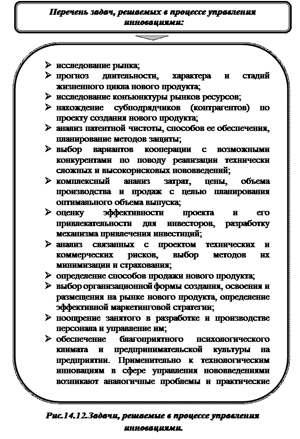 Перечень задач, решаемых в процессе управления инновациями, чрезвычайно широк. Применительно к продуктовым инновациям он включает: