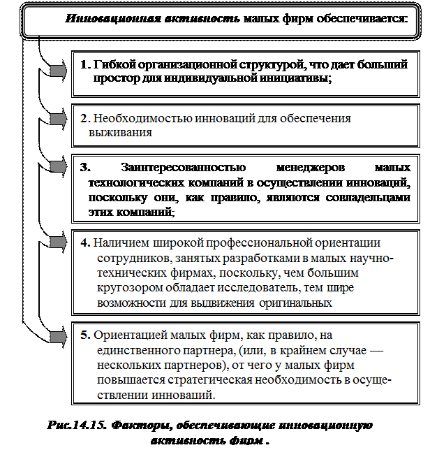 3) заинтересованностью менеджеров малых технологических компаний в осуществлении инноваций, поскольку они, как правило, являются совладельцами этих компаний;