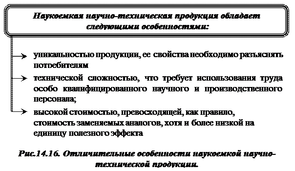 Наукоемкая научно-техническая продукция обладает следующими особенностями: