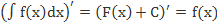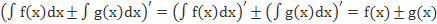 · первое свойство позволяет проводить проверку интегрирования. Чтобы проверить правильность выполненного интегрирования достаточно вычислить производную полученного результата. Если полученная в результате дифференцирования функция окажется равной подынтегральной функции, то это будет означать, что интегрирование проведено верно;