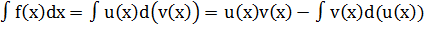 То есть, подынтегральное выражение f(x)dx представляем в виде произведения функции u(x)на d(v(x)) - дифференциал функции v(x). Далее находим функцию v(x) (чаще всего методом непосредственного интегрирования) и d(u(x)) - дифференциал функции u(x). Подставляем найденные выражения в формулу интегрирования по частям и исходный неопределенный интеграл сводится к разности