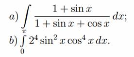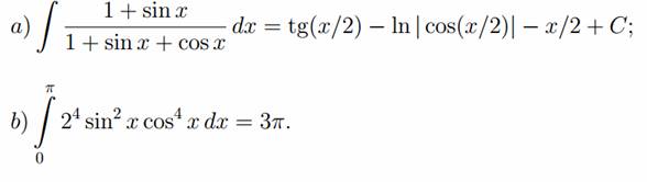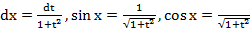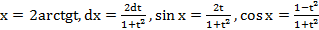 Решение, а). Интегрирование выражений вида , где R — рациональная функция от sin x и cos x, преобразуются в интегралы от рациональных функций с помощью универсальной тригонометрической подстановки tg(x/2) = t. Тогда имеем