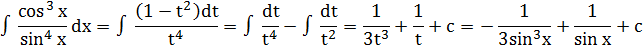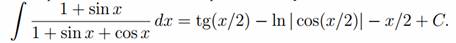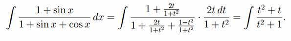 В данном случае для нахождения интеграла ; применим универсальную тригонометрическую подстановку tg(x/2) = t. Тогда Так как дробь неправильная, то, выделяя целую часть, получим Возвращась к исходной переменной будем иметь