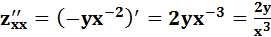 Легко видеть, что частная производная – это производная функции одной переменной, когда значение другой переменной фиксировано. Поэтому частные производные вычисляются по тем же правилам, что и вычисление производных функций одной переменной.