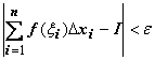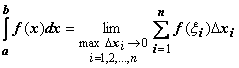 Теорема существования определённого интеграла. Если функция f(x) непрерывна на отрезке [a,b], то она интегрируема по этому отрезку. Примем это утверждение без доказательства, поясним только его смысл. Интегрируемость функции означает существование конечного предела последовательности интегральных сумм, т.е. такого числа , что для любого найдётся такое число , что как только разбиение отрезка удовлетворяет неравенству , то, независимо от выбора точек выполняется неравенство . Требование непрерывности f(x) достаточно для интегрируемости, но не является необходимым. Интегрируемы функции, имеющие конечное или даже счётное число точек разрыва на [a,b] при условии их ограниченности (т.е. все точки разрыва должны быть точками разрыва первого рода). Неограниченная функция не может быть интегрируемой (идея доказательства этого утверждения: если f(x) неограничена на [a,b], то она неограничена на каком-либо [xi-1 , xi], т.е. на этом отрезке можно найти такую точку , что слагаемое , а следовательно, и вся интегральная сумма, будет больше любого наперед заданного числа).