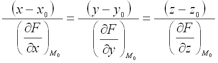 а уравнение нормали к поверхности в этой же точке – в виде: