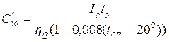 в) Находим необходимую емкость аккумуляторов, приведенную к условному 10 - часовому режиму разряда и температуре среды 20оС:
