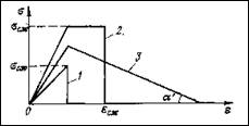 1 - хрупкой; 2 - упругопластической с ограниченной пластической деформацией; 3 - характеризующейся постепенным снижением сопротивления за пределом прочности.