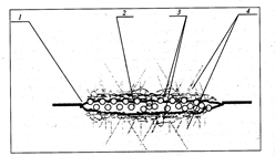 1 - берега трещины; 2 - мелкие кусочки породы между берегами; 3- мелко раздробленный слой породы, куски в котором сохранили частичную сцепляемость с массивом; 4- густая сеть неглубоких трещин.