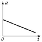 2. Материальная точка M движется по окружности со скоростью v. На рис.1 показан график зависимости проекции скорости Vt от времени ( t– единичный вектор положительного направления, Vt – проекция на это направление). При этом вектор полного ускорения на рис.2 имеет направление …