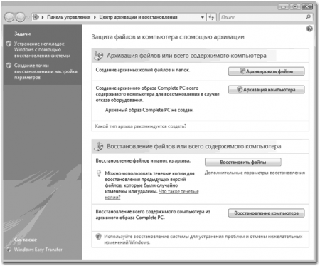 В Windows Vista средства архивации «переехали» в раздел «Пуск – Все программы – Обслуживание». Внешний вид значительно изменился.