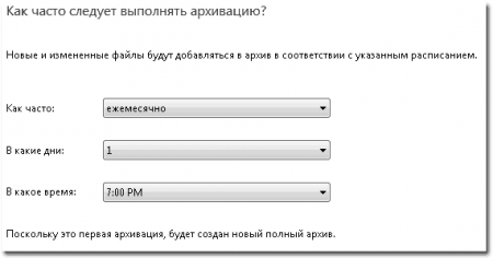 Жмем «Далее». Философия Vista такова, что архивирование данных должно происходить постоянно с заданной периодичностью. Поэтому на следующем шаге необходимо установить расписание архивации.